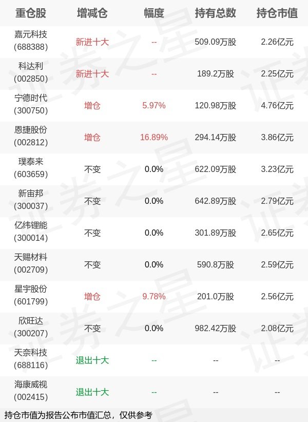 1月19日嘉实基金旗下姚志鹏管理的嘉实智能汽车型基金公布年报,近1年净值增长率-27.31%。与上一季度相比,该基金前十大重仓股新增嘉元科技(688388),科达利(002850);并对宁德时代(300750)增仓6.82万股,为该基金第一大重仓股;天奈科技(688116),海康威视(002415)等退出前十大重仓股;详细数据如下: