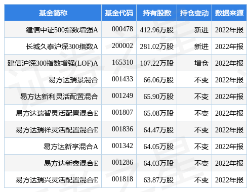 其中持有数量最多的基金为建信中证500指数增强A,目前规模为48.6亿元,最新净值2.853(3月3日),较上一交易日下跌0.15%,近一年下跌6.17%。该基金现任基金经理为叶乐天。